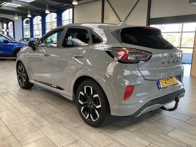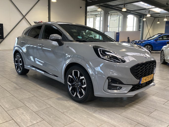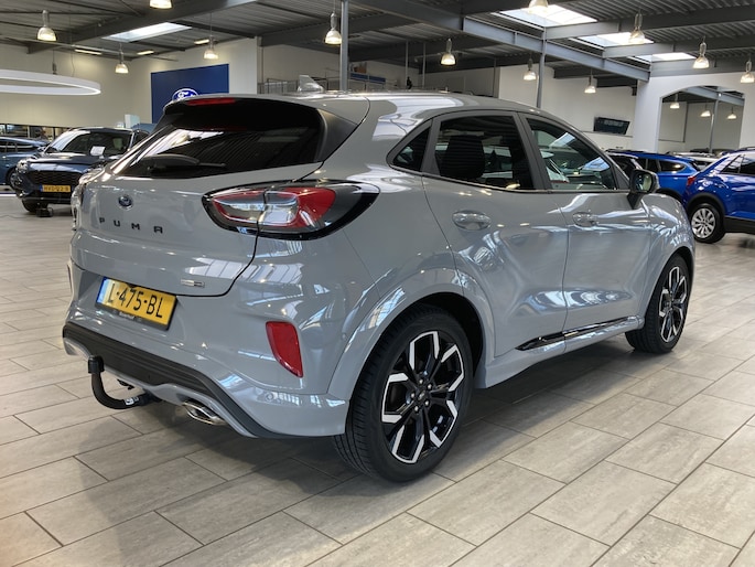 Maak kennis met de Ford Puma. Fords compacte cross-over SUV. Compact van buiten en ruim van binnen. De sportieve lijnen en de aflopende daklijn laten zien dat de Puma een sportieve auto is. Door de hoge zit is het instappen erg gemakkelijk. Wist u dat de kofferbak van de Puma groter is dan de bagageruimte van de Ford Focus? Daarnaast is deze Puma voorzien van hybride techniek. De mild-hybride technologie omvat een elektromotor die helpt de efficiency te verbeteren, in combinatie met zijn automatische versnellingsbak zorgt dit voor een comfortabele en pittige rijervaring.