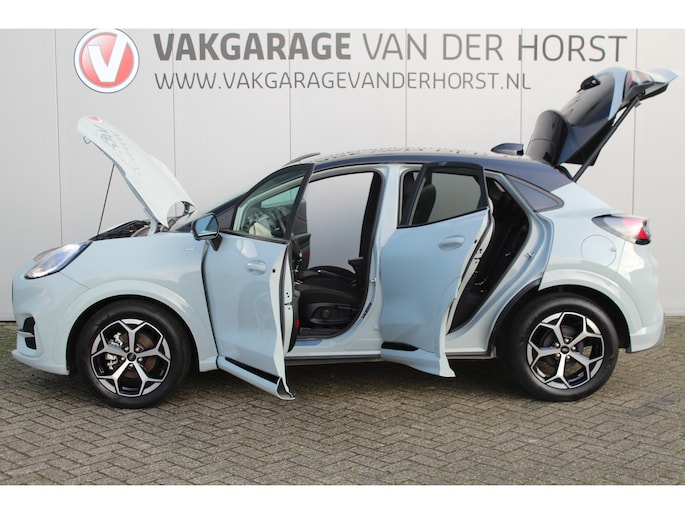 1.0-125pk EcoBoost Mild-Hybrid ST-Line. Mooie luxe hoogzitter ! Slechts 9.900km ! Autm. airco, adapt. cruise control, stoel-, stuur- en voorraamverw., navigatie, telefoonvoorb., LM wielen, elektr. achterklep, LED verl., camera 360gr, pdc v+a etc.