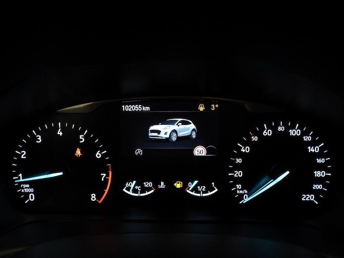 De nieuwste veiligheidssystemen komen in deze Ford Puma samen. Belangrijk voor uw veiligheid en die van uw passagiers is de verkeersbord-detectie in deze auto. Het Lane-keeping systeem registreert permanent of u binnen de lijnen van de rijstrook blijft; dwaalt u onbedoeld af, dan waarschuwt het systeem en corrigeert de koers. De forward collision warning geeft een botswaarschuwing als een aanrijding dreigt met een voorligger. In deze Ford vinden we verder een hill hold functie, brake assist en bandenspanningcontrolesysteem.