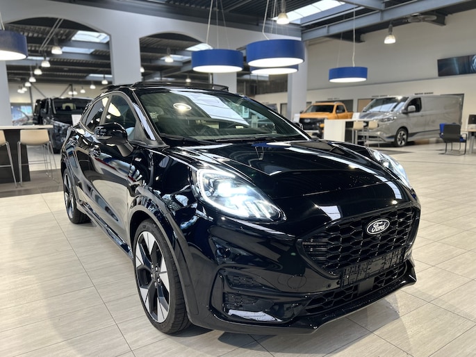 Maak kennis met de Ford Puma. Fords compacte cross-over SUV. Compact van buiten en ruim van binnen. De sportieve lijnen en de aflopende daklijn laten zien dat de Puma een sportieve auto is. Door de hoge zit is het instappen erg gemakkelijk. Wist u dat de kofferbak van de Puma groter is dan de bagageruimte van de Ford Focus? Daarnaast is deze Puma voorzien van hybride techniek. De mild-hybride technologie omvat een elektromotor die helpt de efficiency te verbeteren.