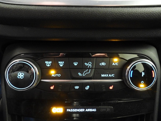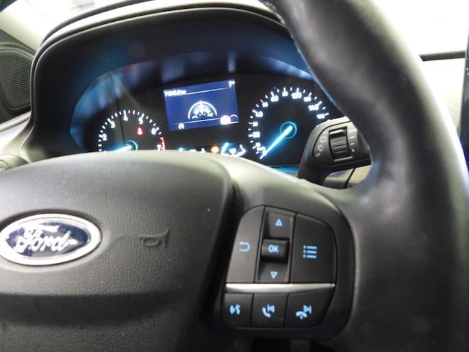 Deze Ford is voorzien van verschillende intelligente veiligheidsvoorzieningen. Ze kijken tijdens het rijden als het ware met u mee, ze signaleren potentieel gevaarlijke situaties en in een aantal gevallen kunnen ze ook ingrijpen. Tijdens de rit hebt u altijd een bijrijder, want de verkeersbord-detectie leest de borden langs de weg en projecteert ze voor u op het instrumentarium. Het Lane-keeping systeem registreert permanent of u binnen de lijnen van de rijstrook blijft; dwaalt u onbedoeld af, dan waarschuwt het systeem en corrigeert de koers. Brake assist verhoogt de remdruk in een noodsituatie zodat u sneller stil staat. De veiligheid van deze auto wordt verder verhoogd door hill hold functie en bandenspanningcontrolesysteem.