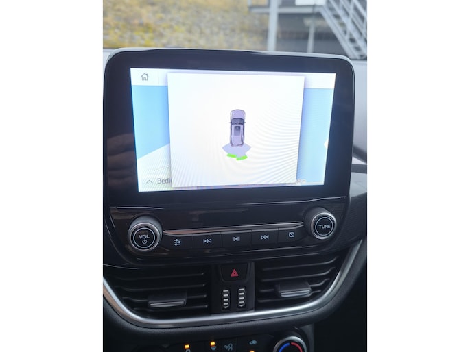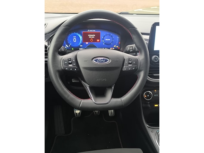 Overzicht, informatie en functionaliteit: dat biedt het digitale dashboard. Zoals u van zo'n jonge auto mag verwachten, zijn hier ook de geavanceerde remote services aanwezig. Simpelweg met een app op uw smartphone controleert u op afstand de status van de auto en bedient u diverse functies. Het full map navigatiesysteem en het audiosysteem (met DAB-ontvangst!) bedient u met knoppen op het stuur of met gesproken commando's. Telefoonaccu in het rood? Laad 'm simpel op met de draadloze oplaadmogelijkheid voor telefoons. Met de hulp van de parkeersensoren kost inparkeren en uitparkeren u geen enkele moeite. U bent in deze Ford ook voorzien van cruise control, sportstuurwiel, keyless entry, airconditioning, centrale deurvergrendeling met afstandsbediening en boordcomputer.
