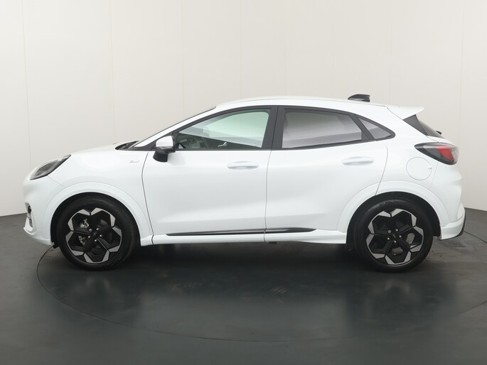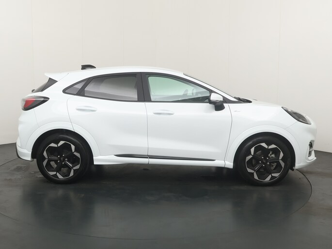 Maak kennis met de Ford Puma. Fords compacte cross-over SUV. Compact van buiten en ruim van binnen. De sportieve lijnen en de aflopende daklijn laten zien dat de Puma een sportieve auto is. Door de hoge zit is het instappen erg gemakkelijk. Wist u dat de kofferbak van de Puma groter is dan de bagageruimte van de Ford Focus? Daarnaast is deze Puma voorzien van hybride techniek. De mild-hybride technologie omvat een elektromotor die helpt de efficiency te verbeteren.