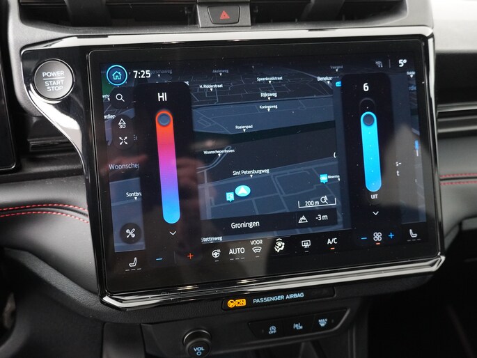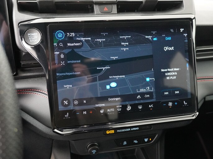 Centraal op het dashboard, onder handbereik ziet u het grote touchscreen. Naast navigatie en bluetooth is het ook mogelijk om via Apple Carplay of Android Auto uw telefoon te koppelen. U kunt dan apps als Google Maps of Spotify op het grote scherm bedienen. Zo hoeft u nooit meer de navigatiekaart te updaten en staat u nooit meer onnodig lang in de file door zeer nauwkeurige verkeersinformatie. Het koppelen gaat draadloos zodat u de telefoon niet meer uit uw broekzak of jaszak hoeft te halen.