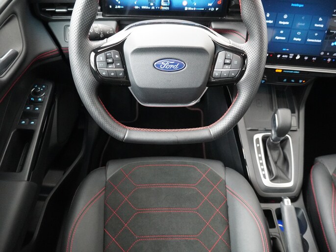 Deze Ford heeft parkeersensoren voor en achter om het parkeren gemakkelijk en veilig te maken. Deze auto heeft zelfs 360 graden camera, zodat u bij het achteruit rijden precies kunt zien wat u doet. Het automatische noodremsysteem kan ingrijpen bij een naderende aanrijding. Op die manier kan de auto een fout van de bestuurder corrigeren en een aanrijding voorkomen of de impact van de aanrijding verminderen. Bij een aanrijding belt de auto zelf met de hulpdiensten, ook als er geen telefoon is aangesloten. De locatie wordt dan ook meegestuurd. Zo kan de auto zelf hulp inschakelen, ook als u dat zelf niet meer kunt. Met de Matrix LED-koplampen hoef je je geen zorgen meer te maken over verblindende tegenliggers. De koplampen passen automatisch hun lichtstraal aan, zodat je altijd optimaal verlicht bent zonder andere weggebruikers te storen. Deze geavanceerde verlichting zorgt voor optimale zichtbaarheid, zelfs in de donkerste omstandigheden.