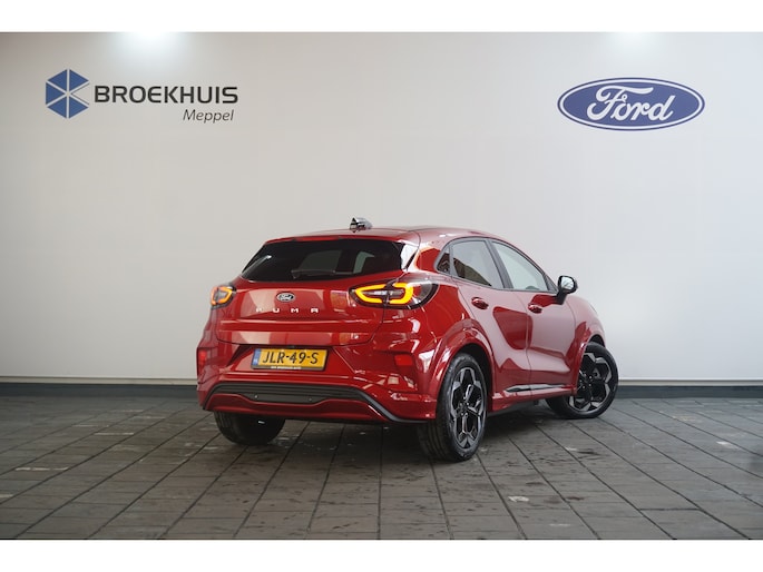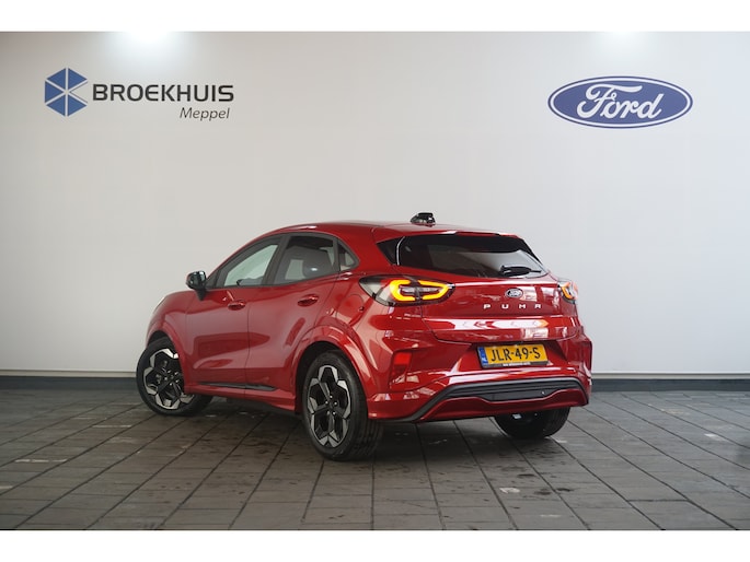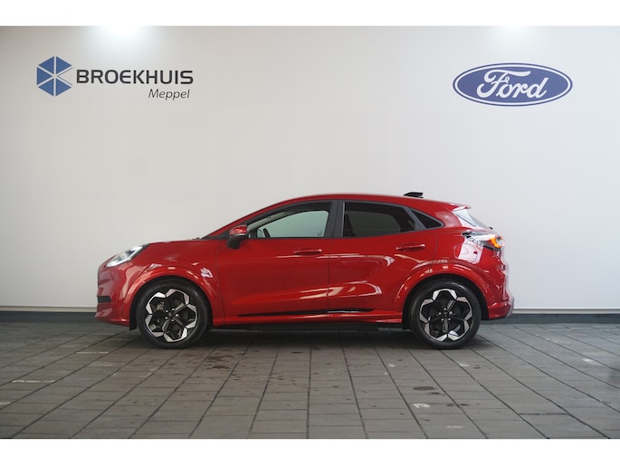 Go Further, is de filosofie van Ford. Een vooruitstrevend motto dat ook bij dit model tot z'n recht komt. Bent u ook toe aan een auto met elektromotor? Goeie keuze! Het is een nieuwe auto, hij is nu uit voorraad leverbaar. De krachtige motor geeft deze Ford uitstekende prestaties. Kou en regen maken geen indruk. Binnen zit u comfortabel dankzij de stoelverwarming. De achterklep opent automatisch met een druk op de knop. Handig als u met volle handen staat. Al is het nog zo fris, koude handen zijn verleden tijd door het verwarmd stuurwiel. De koplampen zijn voorzien van de allernieuwste lichttechnologie: matrix LED-verlichting. In deze Ford profiteert u onder andere ook van: 18 inch lichtmetalen velgen, geluidsisolerende ramen, LED-achterlichten en verstelbare lendensteunen. Deze auto is voorzien van een digitaal dashboard waarmee u de cockpit-interface kunt personaliseren. De hoogwaardige achteruitrijcamera en het display met hoge resolutie zorgen dat helemaal niets u meer ontgaat van wat er achter de auto gebeurt. Rijden-stilstaan, rijden-stilstaan. Niks is irritanter en vermoeiender dan filerijden. Daar heeft deze Ford Puma Gen-E een oplossing voor: de file assistent, die met radarmeting permanent het tempo aanpast op de voorligger. Zelfs als die stopt. Hoe is het met de banden, de accu en andere onderdelen? Connected Services maakt het inzichtelijk, 24/7 via de app. Ook het geluid aan boord is top-of-the-line. Het high performance audiosysteem levert superieure prestaties. De uitrusting van deze auto is met navigatiesysteem, automatische airconditioning, DAB ontvangst, regensensor, cruise control en keyless entry behoorlijk compleet. Pragmatisch en veilig als deze auto is, beschikt hij over diverse veiligheidssystemen. Verkeersbord-detectie herkent verkeersborden en toont deze op het instrumentarium van de auto. Het Lane-keeping systeem garandeert dat u zich niet onverhoeds buiten de lijnen van de rijstrook begeeft. Wij leveren deze nieuwe auto met volledige fabrieksgarantie. Maak nu snel een afspraak om deze auto te bekijken.