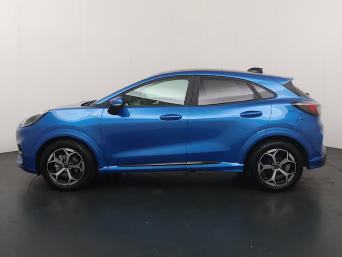 Maak kennis met de Ford Puma. Fords compacte cross-over SUV. Compact van buiten en ruim van binnen. De sportieve lijnen en de aflopende daklijn laten zien dat de Puma een sportieve auto is. Door de hoge zit is het instappen erg gemakkelijk. Wist u dat de kofferbak van de Puma groter is dan de bagageruimte van de Ford Focus? Daarnaast is deze Puma voorzien van hybride techniek. De mild-hybride technologie omvat een elektromotor die helpt de efficiency te verbeteren.