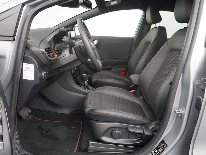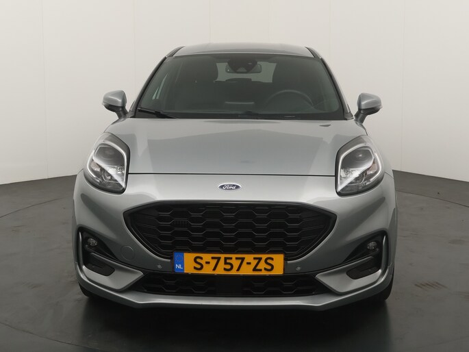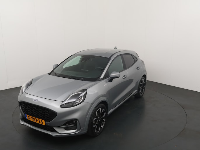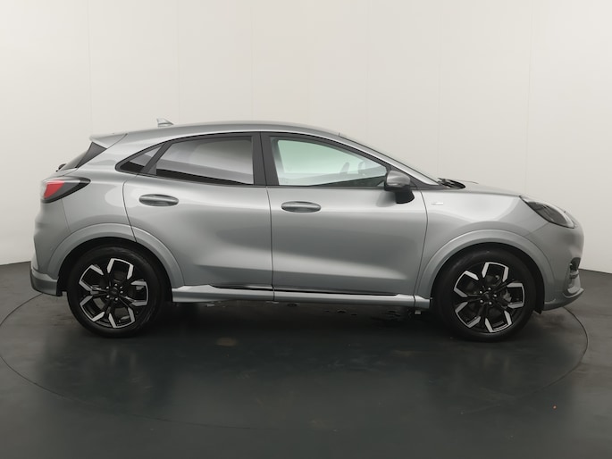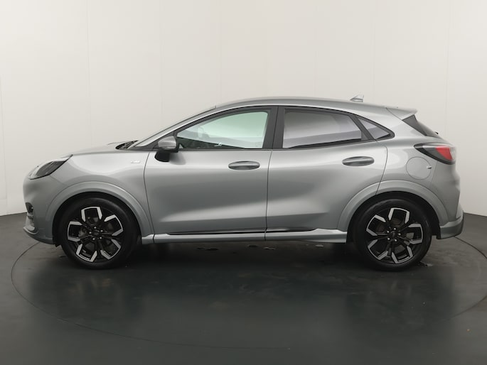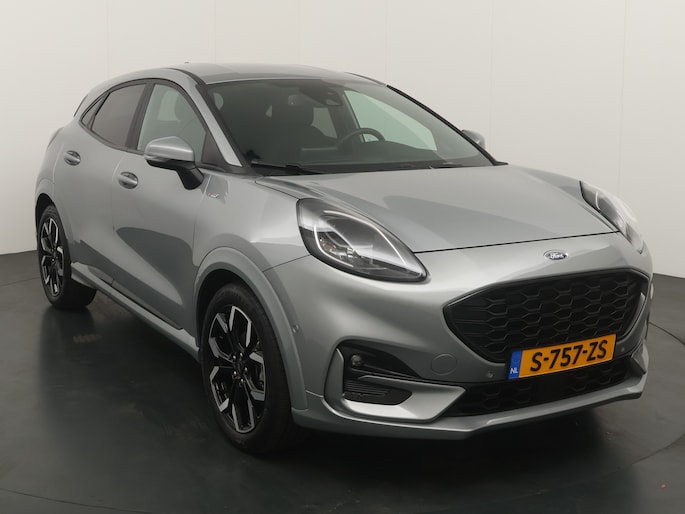 Maak kennis met de Ford Puma. Fords compacte cross-over SUV. Compact van buiten en ruim van binnen. De sportieve lijnen en de aflopende daklijn laten zien dat de Puma een sportieve auto is. Door de hoge zit is het instappen erg gemakkelijk. Wist u dat de kofferbak van de Puma groter is dan de bagageruimte van de Ford Focus? Daarnaast is deze Puma voorzien van hybride techniek. De mild-hybride technologie omvat een elektromotor die helpt de efficiency te verbeteren, in combinatie met zijn automatische versnellingsbak zorgt dit voor een comfortabele en pittige rijervaring.
