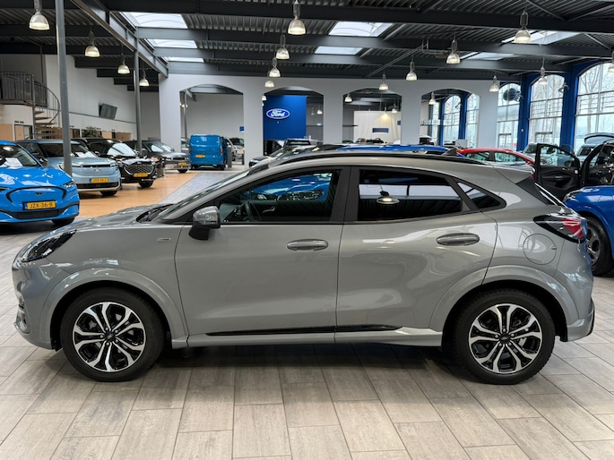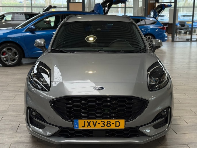 Maak kennis met de Ford Puma. Fords compacte crossover SUV. Compact van buiten en ruim van binnen. De sportieve lijnen en de aflopende daklijn laten zien dat de Puma een sportieve auto is. Door de hoge zit is het instappen erg gemakkelijk. Wist u dat de kofferbak van de Puma groter is dan de bagageruimte van de Ford Focus?