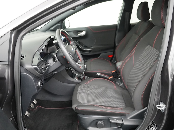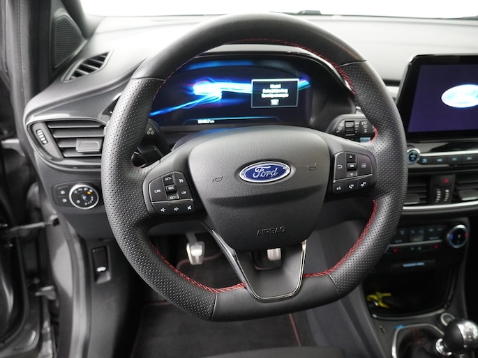 De ST-Line uitvoering geeft de auto een extra sportieve uitstraling, door de 17 inch lichtmetalen velgen en de strakke LED-verlichting krijgt de auto een extra moderne uitstraling. Binnenin valt direct de digitale kilometerteller op, die het interieur een hoogwaardige uitstraling geeft.