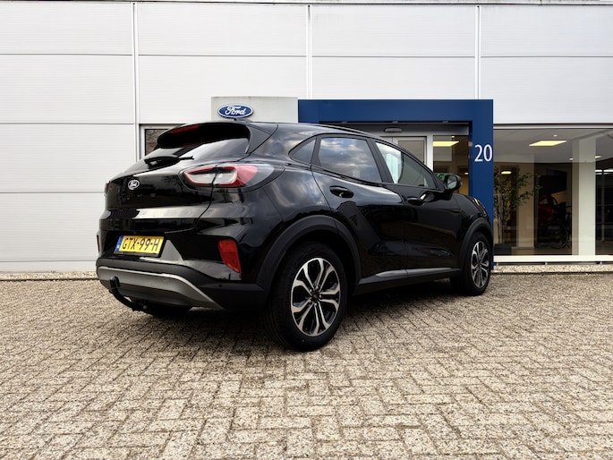 Maak kennis met de Ford Puma. Fords compacte cross-over SUV. Compact van buiten en ruim van binnen. De sportieve lijnen en de aflopende daklijn laten zien dat de Puma een sportieve auto is. Door de hoge zit is het instappen erg gemakkelijk. Wist u dat de kofferbak van de Puma groter is dan de bagageruimte van de Ford Focus? Daarnaast is deze Puma voorzien van hybride techniek. De mild-hybride technologie omvat een elektromotor die helpt de efficiency te verbeteren.