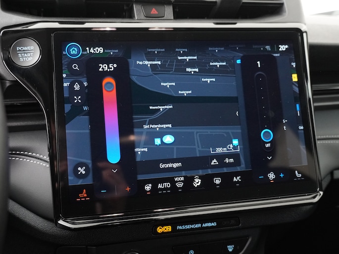 Centraal op het dashboard, onder handbereik ziet u het grote touchscreen. Naast navigatie en bluetooth is het ook mogelijk om via Apple Carplay of Android Auto uw telefoon te koppelen. U kunt dan apps als Google Maps of Spotify op het grote scherm bedienen. Zo hoeft u nooit meer de navigatiekaart te updaten en staat u nooit meer onnodig lang in de file door zeer nauwkeurige verkeersinformatie. Het koppelen gaat draadloos zodat u de telefoon niet meer uit uw broekzak of jaszak hoeft te halen.