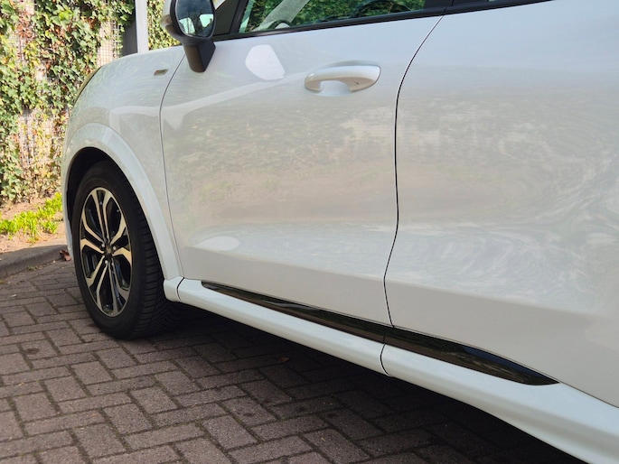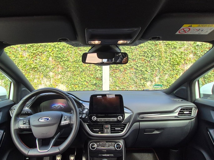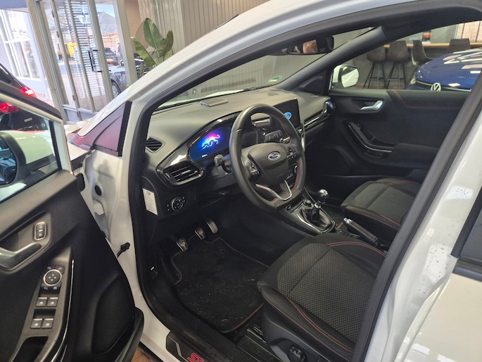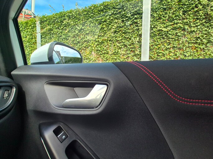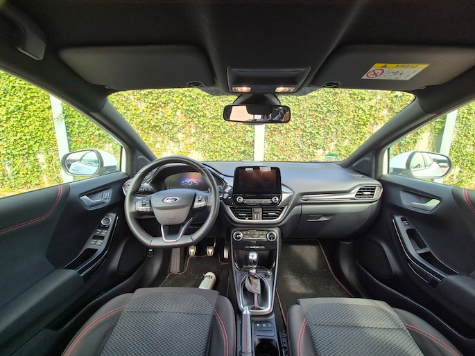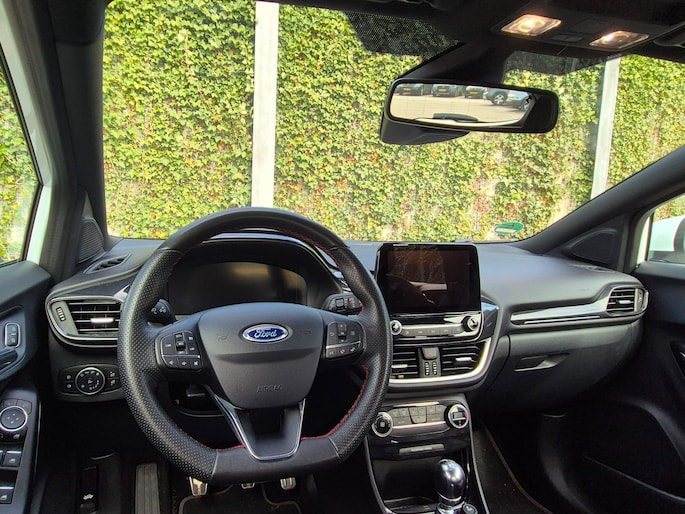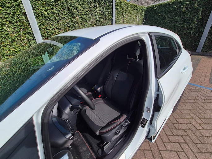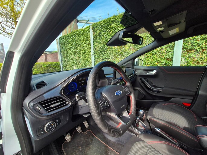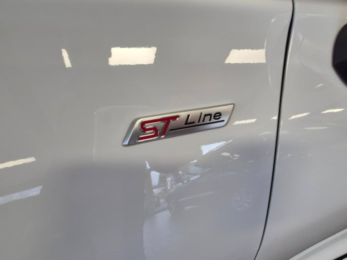Deze ST-Line is ook nog eens mooi aangekleed. Denk aan LED koplampen, LED achterlichten, 17 inch lichtmetalen velgen in zwart/glansgedraaid, een groot digitaal instrumentenpaneel van 12,3 inch en een 8 inch touchscreen met navigatie, AppLink, Bluetooth en DAB-radio. Ook aanwezig zijn cruise control, parkeersensoren achter, keyless start, draadloos laden voor je telefoon, inklapbare buitenspiegels en sportstoelen.