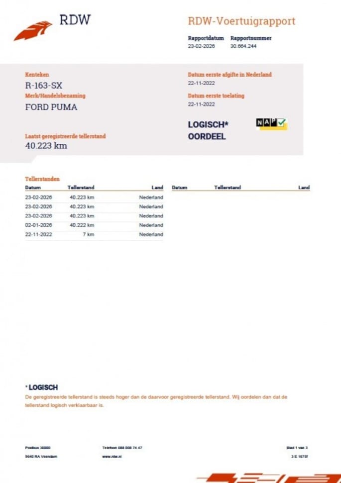 Kilometerstand gecontroleerd