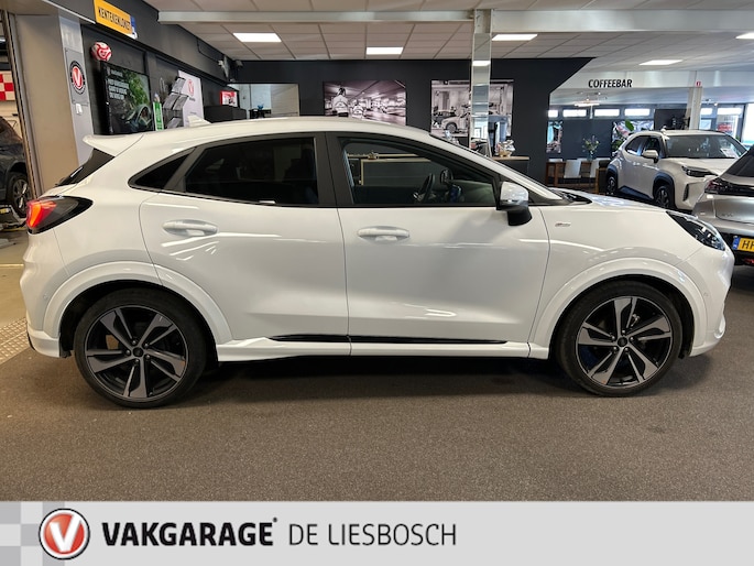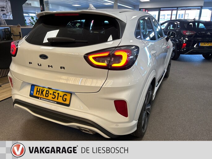 U ziet het al aan de buitenkant en u voelt het zodra u de krachtige motor start, deze sportieve Ford PUMA is gemaakt om prestaties te leveren. De aandrijving van deze Ford wordt verzorgd door een driecilinder motor en een automatische transmissie. Voor het pittige uiterlijk én goed gesteund zitten zorgen de sportstoelen. De elektrische achterklep opent met een druk op de knop, zodat u gemakkelijk toegang heeft tot de bagageruimte. Een verwarmd stuurwiel overbodige luxe? Wacht maar tot het kouder wordt! Tot de uitrusting van deze Ford behoren ook 19 inch lichtmetalen velgen, LED koplampen, sportonderstel, halflederen bekleding, geluidsisolerende ramen en elektrisch inklapbare buitenspiegels.