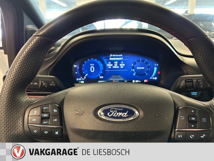Voor een goed en duidelijk overzicht onderweg is het digitale dashboard uitermate slim ingedeeld. Altijd achter zicht, nooit meer nekkramp! De achteruitrijcamera maakt het supermakkelijk. Met adaptive cruise control houdt de auto zelfstandig afstand tot uw voorligger. Een veiligheidsverhogende optie waarmee u comfortabel onderweg bent. Veilig en comfortabel rijden wordt nog eens versterkt door Connected Services, zodat u diverse vitale functies van de auto altijd kunt checken in de app. Smakelijke subs en knisperend hoog: het high performance audiosysteem geeft elke frequentie een kwaliteitsbehandeling voor akoestisch genieten onderweg. De uitrusting van deze Ford is met dashboard met spraakbediening, navigatiesysteem, achteropkomend verkeer waarschuwing, automatische airconditioning, draadloos opladen en DAB ontvangst behoorlijk compleet.
