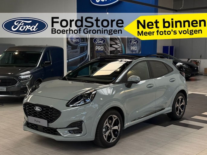 Maak kennis met de Ford Puma. Fords compacte cross-over SUV. Compact van buiten en ruim van binnen. De sportieve lijnen en de aflopende daklijn laten zien dat de Puma een sportieve auto is. Door de hoge zit is het instappen erg gemakkelijk. Wist u dat de kofferbak van de Puma groter is dan de bagageruimte van de Ford Focus? Daarnaast is deze Puma voorzien van hybride techniek. De mild-hybride technologie omvat een elektromotor die helpt de efficiency te verbeteren.