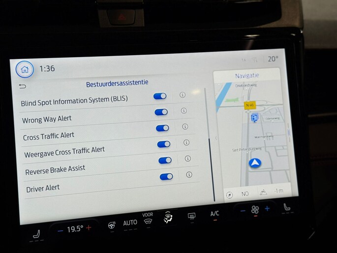 Dankzij adaptieve cruise control hoef je niet constant te remmen of gas te geven. De auto houdt automatisch afstand tot je voorligger en past soepel je snelheid aan. Ideaal voor lange snelwegritten. De lane assist geeft u een kleine stuurcorrectie of trilling in het stuur als u onbedoeld uw rijbaan dreigt te verlaten. Natuurlijk is deze luxe Ford ook voorzien van climate control. Zo kunt u de temperatuur in de auto op een comfortabel niveau instellen. De auto zorgt ervoor dat er gekoeld of verwarmd wordt om het in de auto aangenaam te houden. Dit voorkomt grote temperatuurverschillen. Ook zorgt de climate control dat de luchtvochtigheid op peil blijft. Zo zijn beslagen ramen in een mum van tijd ontwasemd.