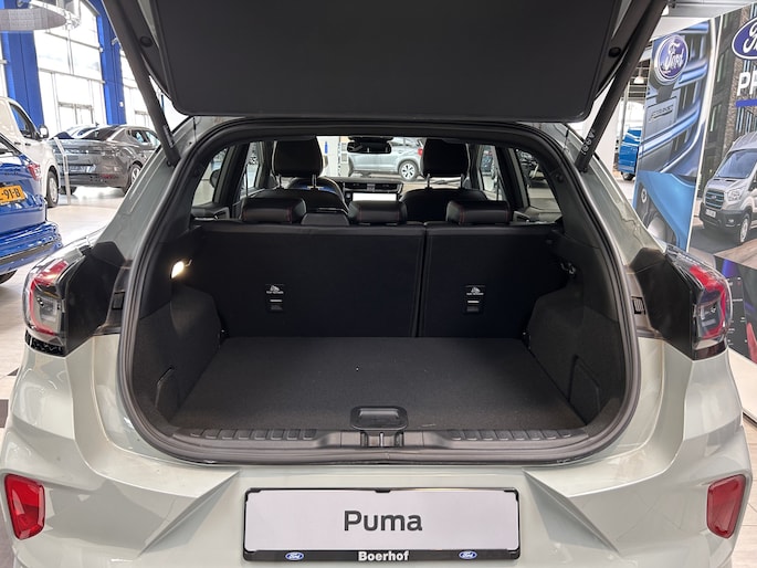 Maak kennis met de Ford Puma. Fords compacte cross-over SUV. Compact van buiten en ruim van binnen. De sportieve lijnen en de aflopende daklijn laten zien dat de Puma een sportieve auto is. Door de hoge zit is het instappen erg gemakkelijk. Wist u dat de kofferbak van de Puma groter is dan de bagageruimte van de Ford Focus? Daarnaast is deze Puma voorzien van hybride techniek. De mild-hybride technologie omvat een elektromotor die helpt de efficiency te verbeteren.