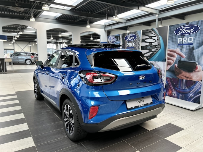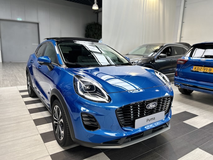Maak kennis met de Ford Puma. Fords compacte crossover SUV. Compact van buiten en ruim van binnen. De sportieve lijnen en de aflopende daklijn laten zien dat de Puma een sportieve auto is. Door de hoge zit is het instappen erg gemakkelijk. Wist u dat de kofferbak van de Puma groter is dan de bagageruimte van de Ford Focus? Daarnaast is deze Puma voorzien van hybride techniek.