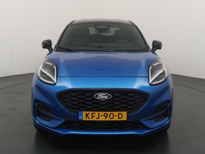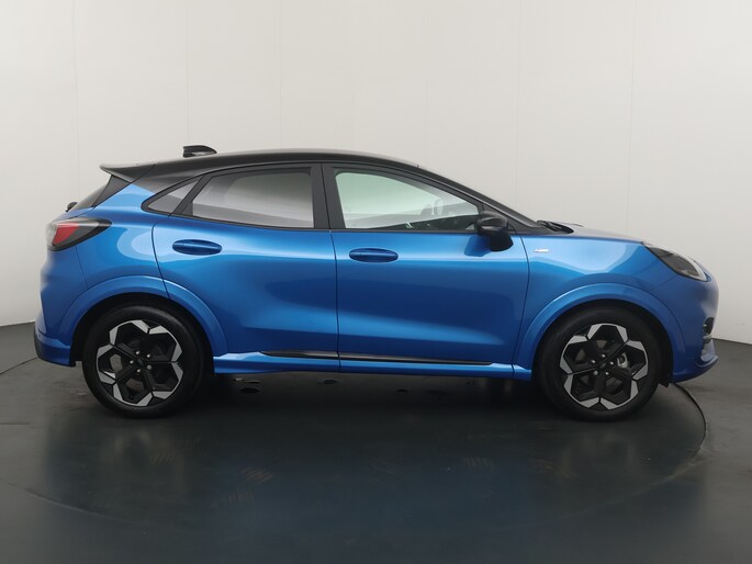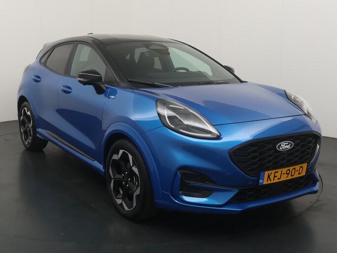 Maak kennis met de Ford Puma. Fords compacte cross-over SUV. Compact van buiten en ruim van binnen. De sportieve lijnen en de aflopende daklijn laten zien dat de Puma een sportieve auto is. Door de hoge zit is het instappen erg gemakkelijk. Wist u dat de kofferbak van de Puma groter is dan de bagageruimte van de Ford Focus? Daarnaast is deze Puma voorzien van hybride techniek. De mild-hybride technologie omvat een elektromotor die helpt de efficiency te verbeteren.