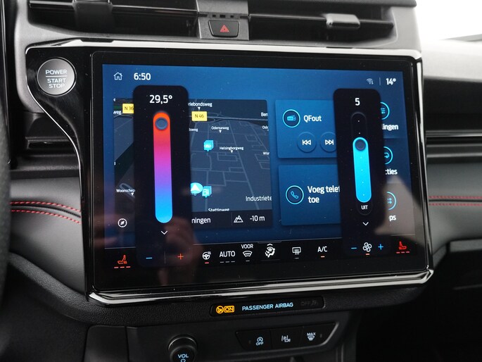 Centraal op het dashboard, onder handbereik ziet u het grote touchscreen. Naast navigatie en bluetooth is het ook mogelijk om via Apple Carplay of Android Auto uw telefoon te koppelen. U kunt dan apps als Google Maps of Spotify op het grote scherm bedienen. Zo hoeft u nooit meer de navigatiekaart te updaten en staat u nooit meer onnodig lang in de file door zeer nauwkeurige verkeersinformatie. Het koppelen gaat draadloos zodat u de telefoon niet meer uit uw broekzak of jaszak hoeft te halen.