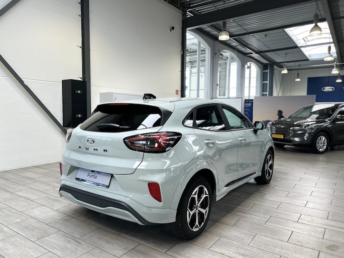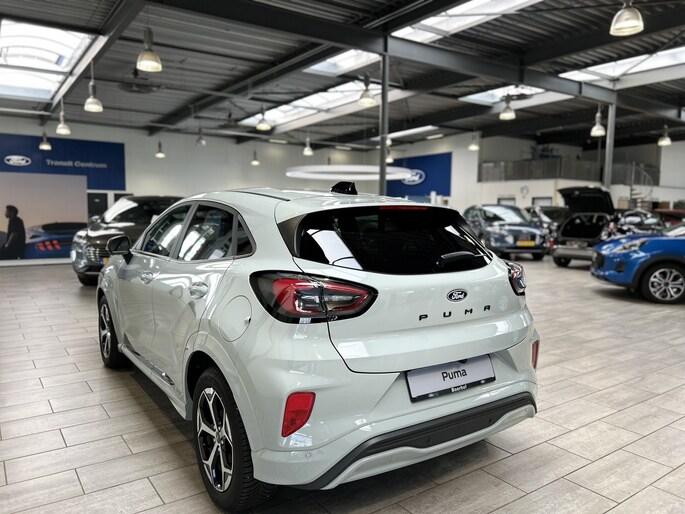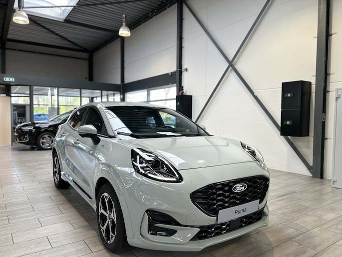 Maak kennis met de Ford Puma. Fords compacte cross-over SUV. Compact van buiten en ruim van binnen. De sportieve lijnen en de aflopende daklijn laten zien dat de Puma een sportieve auto is. Door de hoge zit is het instappen erg gemakkelijk. Wist u dat de kofferbak van de Puma groter is dan de bagageruimte van de Ford Focus? Daarnaast is deze Puma voorzien van hybride techniek. De mild-hybride technologie omvat een elektromotor die helpt de efficiency te verbeteren.