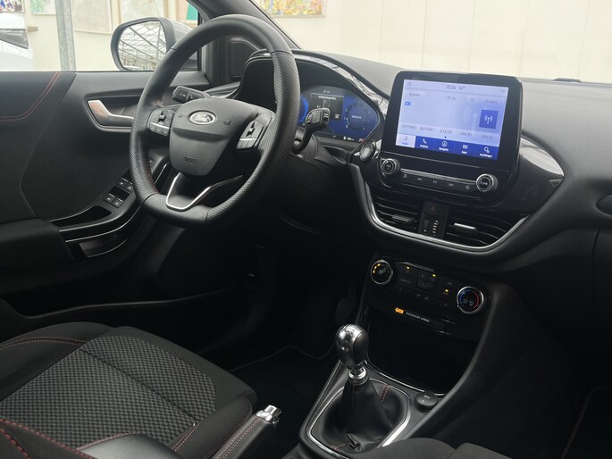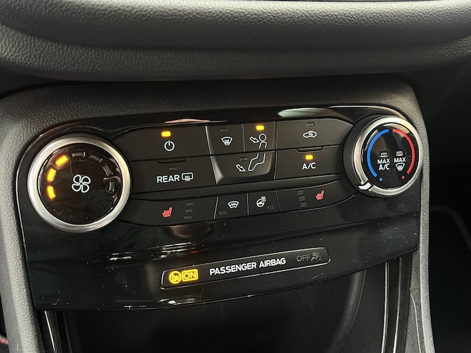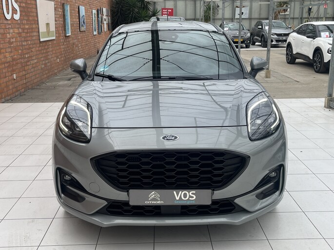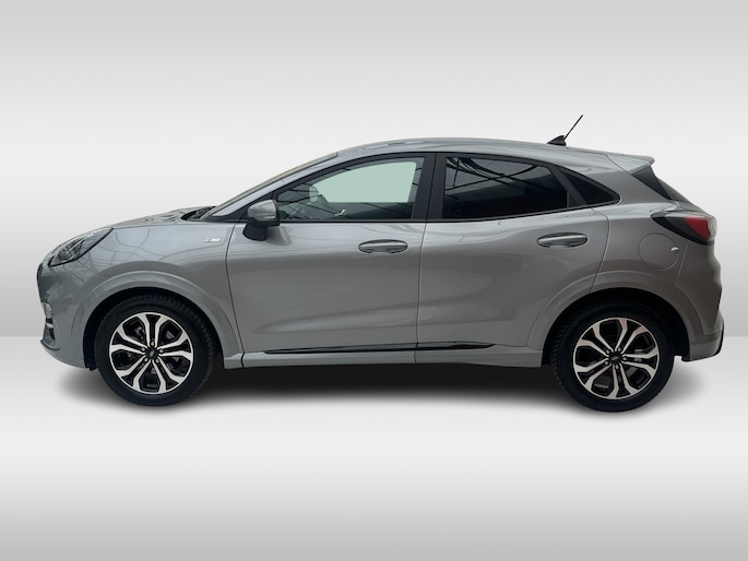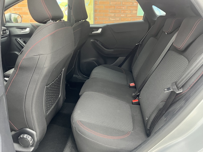Alle technologie in de Ford Puma is er op gericht om uw rit veilig en gemakkelijk te laten verlopen. De aandrijving van deze Ford wordt verzorgd door een driecilinder benzinemotor en een handgeschakelde zesversnellingsbak. De verwarmbare voorstoelen zijn een heerlijke extra optie, waarmee u uzelf en uw bijrijder een groot plezier doet. Ziet er goed uit, die sportstoelen. Maar waar het om gaat, is de solide zit onder alle omstandigheden. Tot de uitrusting behoren ook 17 inch lichtmetalen velgen, LED koplampen, sportonderstel, donker getint glas achter, in delen neerklapbare achterbank en LED-achterlichten.