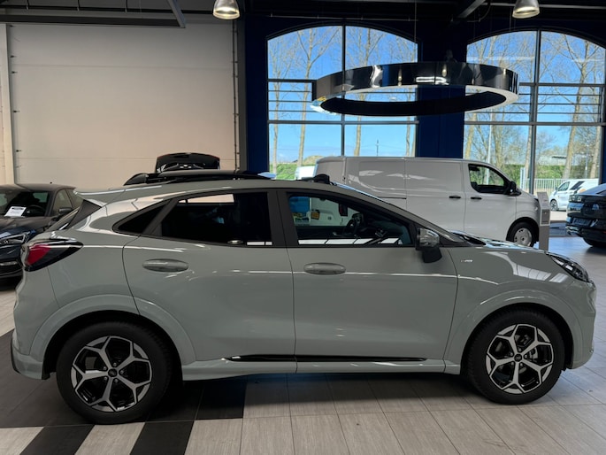 Maak kennis met de Ford Puma. Fords compacte cross-over SUV. Compact van buiten en ruim van binnen. De sportieve lijnen en de aflopende daklijn laten zien dat de Puma een sportieve auto is. Door de hoge zit is het instappen erg gemakkelijk. Wist u dat de kofferbak van de Puma groter is dan de bagageruimte van de Ford Focus? Daarnaast is deze Puma voorzien van hybride techniek. De mild-hybride technologie omvat een elektromotor die helpt de efficiency te verbeteren.