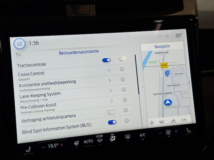 Dankzij adaptieve cruise control hoef je niet constant te remmen of gas te geven. De auto houdt automatisch afstand tot je voorligger en past soepel je snelheid aan. Ideaal voor lange snelwegritten. De lane assist geeft u een kleine stuurcorrectie of trilling in het stuur als u onbedoeld uw rijbaan dreigt te verlaten. Natuurlijk is deze luxe Ford ook voorzien van climate control. Zo kunt u de temperatuur in de auto op een comfortabel niveau instellen. De auto zorgt ervoor dat er gekoeld of verwarmd wordt om het in de auto aangenaam te houden. Dit voorkomt grote temperatuurverschillen. Ook zorgt de climate control dat de luchtvochtigheid op peil blijft. Zo zijn beslagen ramen in een mum van tijd ontwasemd.
