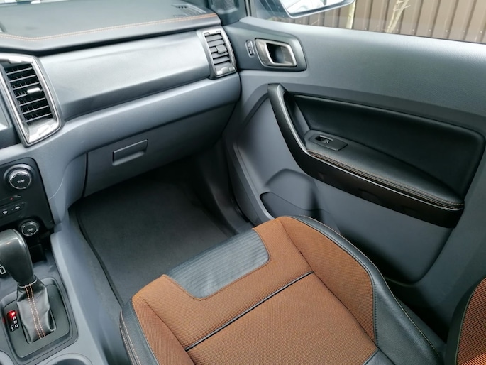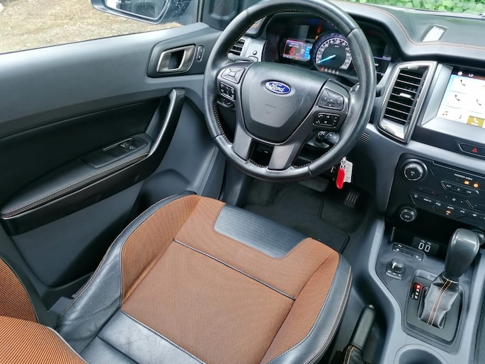 Het interieur van de Ford Ranger 3.2 TDCi Wildtr.Sup. is voorzien van hoogwaardige kunstlederen/microvezel bekleding, wat zorgt voor een luxe uitstraling en extra comfort tijdens het rijden. De materialen zijn duurzaam en eenvoudig schoon te houden, waardoor uw auto er altijd als nieuw uit blijft zien.
