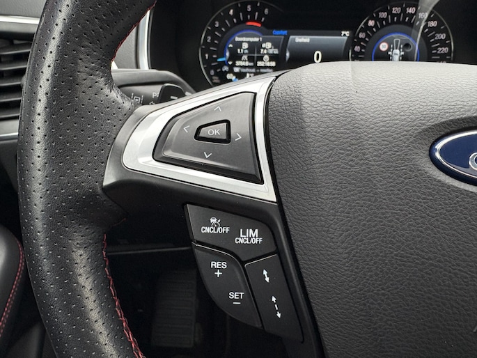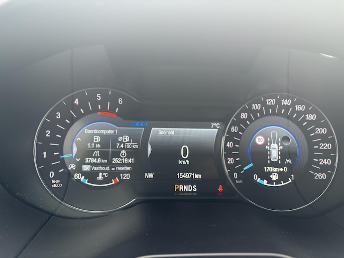 Met de achteruitrijcamera ziet u precies wat er achter de auto gebeurt. Hoe is het met de banden, de accu en andere onderdelen? Connected Services maakt het inzichtelijk, 24/7 via de app. In deze auto klinkt uw favoriete muziek nog beter dankzij het high performance audiosysteem. Met electronic climate control hoeft u alleen de gewenste temperatuur in te stellen. Het systeem doet de rest. Achter het stuur van deze Ford bent u niet alleen. De auto kijkt als het ware met u mee tijdens de rit. De regensensor schakelt de ruitenwissers in als het nodig is en de automatisch inschakelbare verlichting doet de lichten voor u aan. Ook dashboard met spraakbediening, cruise control, keyless entry, automatisch dimmende binnenspiegel, lederen stuur en versnellingspook en bagage afdekhoes zijn aan boord.