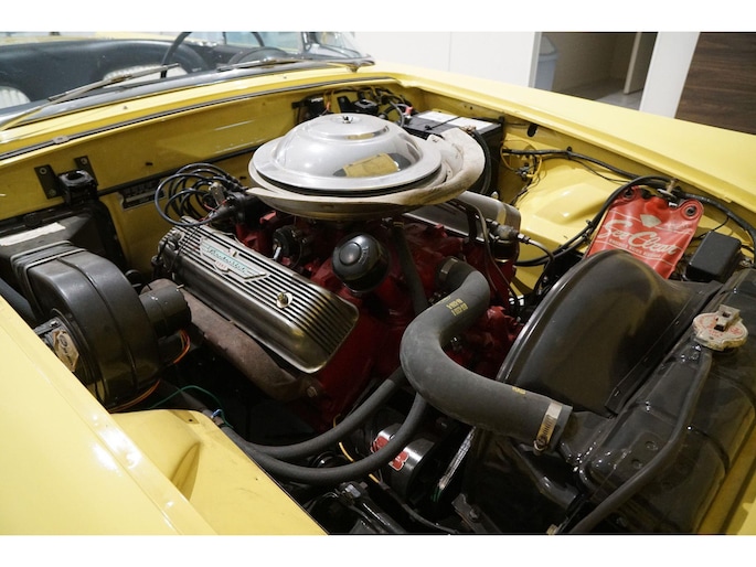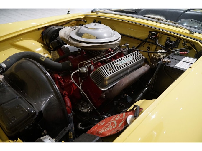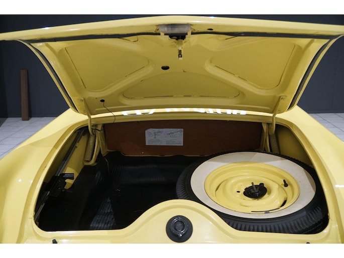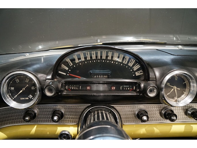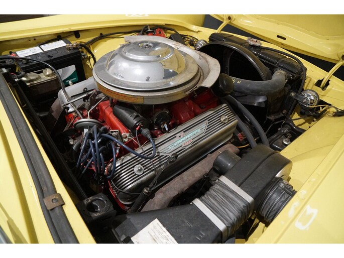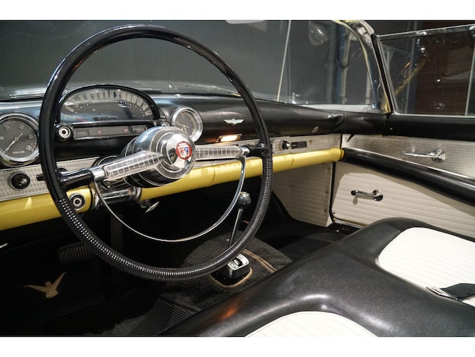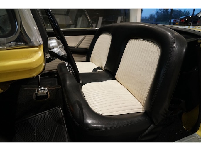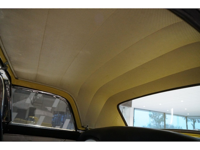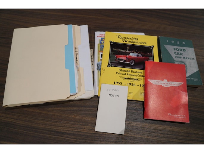 Allereerste generatie Thunderbird, De allereerste Thunderbird is namelijk gebouwd in 1955 en dat is ook het bouwjaar van deze auto (productie gestart in oktober 1954 maar als modeljaar 1955). De productiedatum van deze auto is 17 juli 1955. Dit modeljaar 1955 heeft de 292 cubic inch OHV 292 Y-Block V8 met 4778 cc en 198 PK / 148 PK. De handgeschakelde versie had 193 PK, maar bij deze Ford-o-matic automaatversie heeft een motor een hogere compressieverhouding van 8.5:1 in plaats van 8.1:1. Deze Thunderbird heeft een witte softtop (in goede staat) en een hardtop in carrosseriekleur met standaard voor de winterstalling. Deze gele carrosseriekleur heeft code V op het typeplaatje, dat staat voor Goldenrod Yellow. De interieurcode op het plaatje is A, dit is Black/White. De auto is dus nog in originele kleurstelling als vanaf fabriek. Deze auto hebben wij zelf recent geïmporteerd vanuit Florida, Amerika. Er is veel historie aanwezig, diverse facturen, en boekjes. Reservewiel, Afdekhoes, ook voor de hardtop. Origineel 45.628 miles gereden, Elektrisch systeem omgebouwd naar 12 Volt, Remmen omgebouwd naar schijfremmen voor + achter, In totaal slechts 3 eigenaren gehad. Totaal geen roest.
