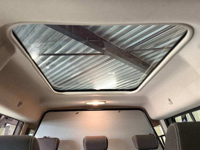 Binnenin treft u een verzorgde en praktische cabine met comfortabele zitplaatsen voor vijf personen, inclusief voldoende beenruimte en een royale bagageruimte dankzij de verlengde carrosserie. De hoge instap en overzichtelijke zitpositie zorgen voor extra rijcomfort en zekerheid onderweg.