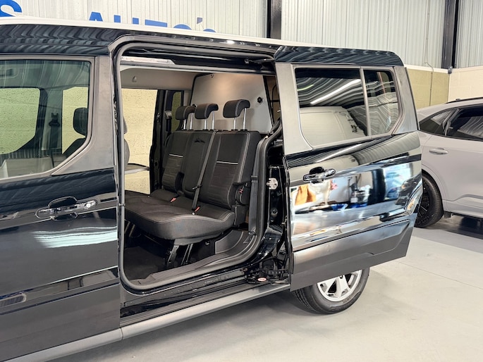 Deze Tourneo is uitgevoerd in de luxe Titanium-specificatie, waardoor u kunt rekenen op een zeer complete uitrusting. Het royale panoramadak zorgt voor een aangename lichtinval en een ruimtelijke beleving. De QuickClear voorruitverwarming biedt optimaal gemak tijdens koude ochtenden: binnen enkele ogenblikken rijdt u met een heldere voorruit weg. Verder is de auto voorzien van climate control, cruise control, parkeersensoren, en lichtmetalen velgen, wat bijdraagt aan zowel comfort als uitstraling.