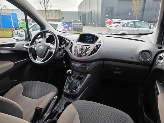 U luistert naar het audiosysteem. Maar het audiosysteem luistert ook naar u! Alle commando's gaan via spraakbediening. Parkeerplekken worden er niet ruimer op. Maar met de aanwezige parkeersensoren krijgt u deze Ford Tourneo Courier zonder problemen op z'n plaats. De regensensor activeert automatisch de ruitenwissers als het regent of sneeuwt. De cruise control geeft elke flitser het nakijken. Ja, airconditioning is er natuurlijk ook in deze auto. Met lederen stuur en centrale deurvergrendeling met afstandsbediening is deze Ford helemaal compleet.