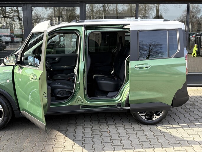 Deze Ford Tourneo Courier is ook nog eens uitgerust met diverse zeer veel mooie opties zoals o.a. Automatische Airco, Adaptive Cruise control, Achteruitrij Camera, Navigatie op groot scherm via Apple Carplay of Andriod auto, Origineel Navigatiesysteem, Carkit, Digitaal dashboard, Parkeersensoren voor en achter, Dakrailing, Extra getint glas achter, LED dagrijverlichting, 2e zitrij met 3 stoelen welke ook nog eens opklapbaar zijn (zie foto's), Armsteunen, Metaal lak, Lichtmetalen velgen, IsoFix aanluiting voor kinderzitjes, Uitschakelbare bijrijders airbag, en nog vele andere opties..