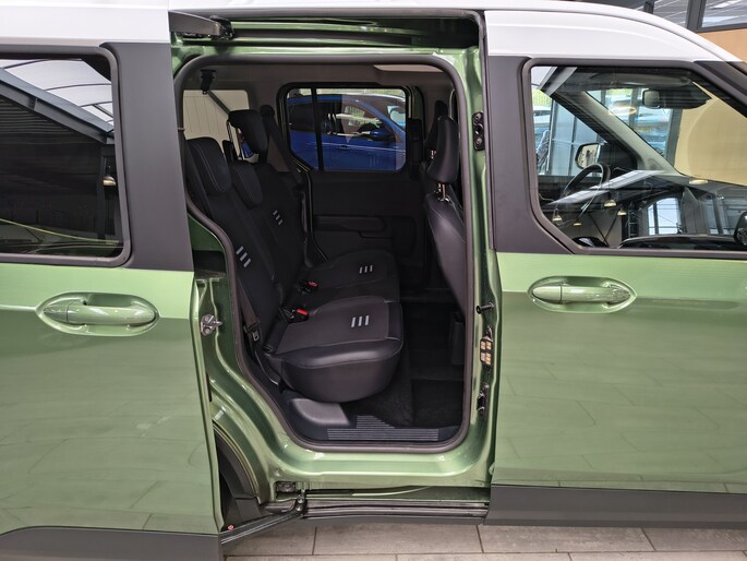 Wij krijgen in de showroom heel vaak de vraag naar een compacte, hoge auto met een automaat. Tot voor kort konden wij alleen aan deze vraag voldoen met de Ford Puma. Maar nu is er ook de Ford Tourneo Courier! Deze auto staat op dezelfde basis als de Ford Puma en wordt in dezelfde fabriek gemaakt. De Puma heeft zich inmiddels bewezen als een erg fijn rijdende auto. De auto zit degelijk in elkaar en is erg betrouwbaar. Klein minpuntje van de Puma is de sportieve daklijn. Dit belemmert sommige mensen bij het instappen. Dat minpuntje heeft de Tourneo Courier niet. Deze auto is met zijn 1 meter 85 (zonder dakrails) echt hoog! Instappen wordt hiermee wel heel eenvoudig. Door de dubbele schuifdeur is het achterin ook gemakkelijk instappen. Voor zijn compacte buitenmaten is de achterbank verrassend ruim. De bagageruimte is met 570 liter gigantisch! Door het ontbreken van een tildrempel is het bovendien eenvoudig inladen. De achterbank is in delen neerklapbaar. Met de achterbank omgeklapt ontstaat een laadruimte die je in een bestelwagen verwacht!