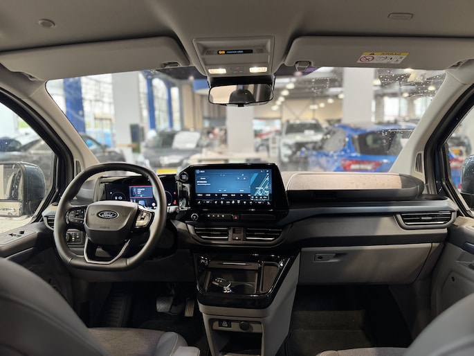 Op het gebied van veiligheid doet deze Tourneo niet onder voor een luxe personenauto. De inzittenden worden rondom beschermd door airbags. Het automatische noodremsysteem kan ingrijpen bij dreigend gevaar om een aanrijding te voorkomen of de impact te verminderen. Bij een ongeval belt de auto automatisch de hulpdiensten en stuurt direct de locatie mee, zelfs wanneer er geen telefoon is aangesloten.