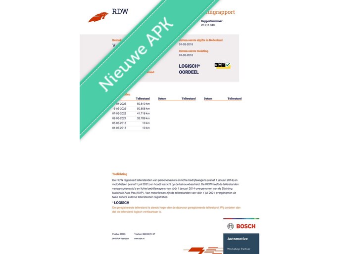 Kilometerstand gecontroleerd
