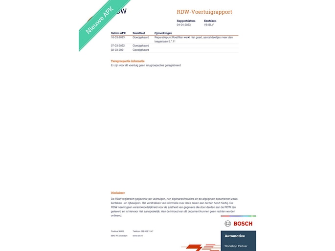 Bovag garantie - €695,-
