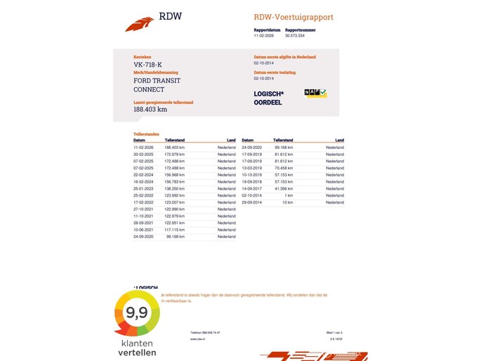 Kilometerstand gecontroleerd