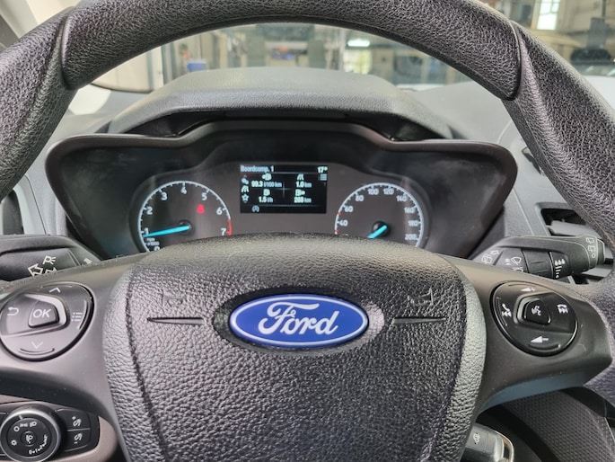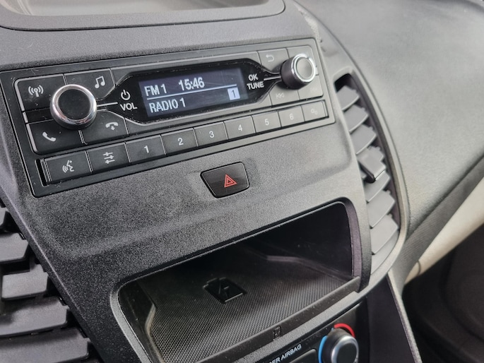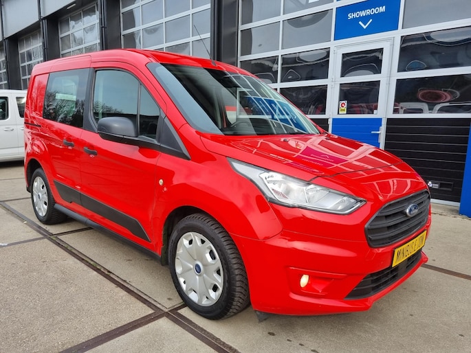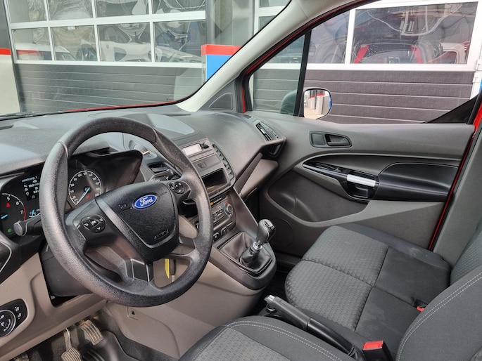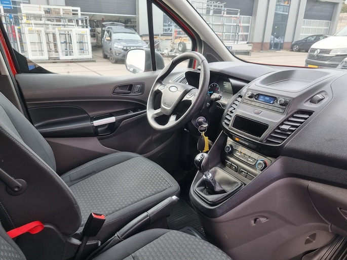 Fraaie 3-persoons Ford Transit Connect 1.0 Ecoboost L1 Ambiente welke o.a. is voorzien van airconditioning, parkeersensoren, bluetooth radio, mistlampen, bumpers in kleur, tussenschot met ruit en achterdeuren met ramen.