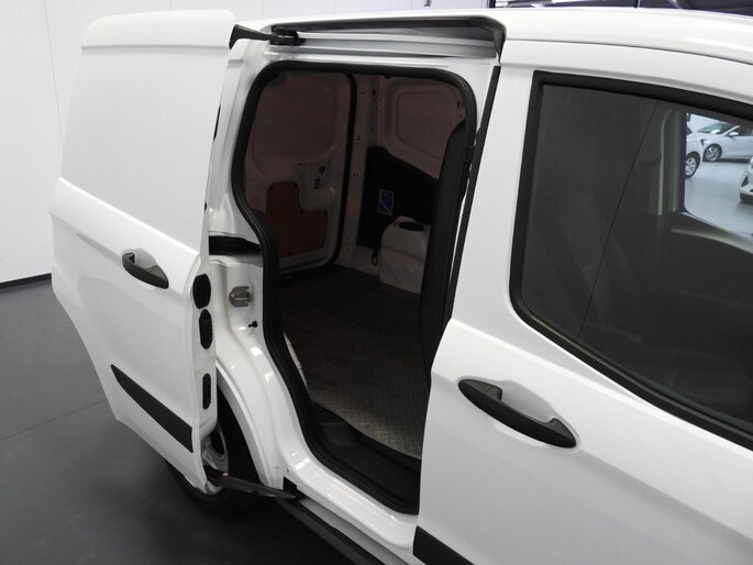 Ook over uw schouder ziet u onderweg niet alles wat er aan de achterzijde gebeurt. Daarom heeft deze Ford Transit Courier een achteropkomend verkeer waarschuwing. Een andere zender zoeken of het volume wijzigen? Het audiosysteem heeft bediening op het stuur. Met de DAB-ontvanger heeft u keuze uit talloze digitale radiozenders met de allerhoogste geluidskwaliteit. Allicht is er in deze auto ook airconditioning. Ook centrale deurvergrendeling met afstandsbediening en boordcomputer horen tot de voorzieningen op deze auto.