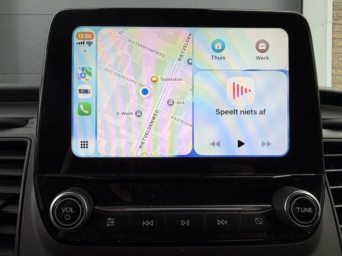 Nooit meer parkeerschade dankzij de achteruitrijcamera. Het infotainmentsysteem bedient u met uw vingers of met uw stem, met dank aan de geïntegreerde stembediening. U weet altijd waar u moet zijn, dankzij het navigatiesysteem. Met de DAB-ontvanger luistert u naar glasheldere digitale radio. Het hoort bij een intelligente auto als deze dat hij zelf in staat is om zijn omgeving in de gaten te houden. Dat doet deze Ford met een automatisch inschakelbare verlichting en een regensensor. De uitrusting van deze auto is met cruise control, airconditioning, lederen stuur, centrale deurvergrendeling met afstandsbediening, boordcomputer en lederen versnellingspook behoorlijk compleet.