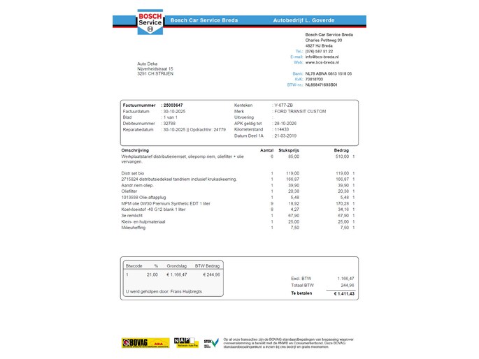 Kilometerstand gecontroleerd