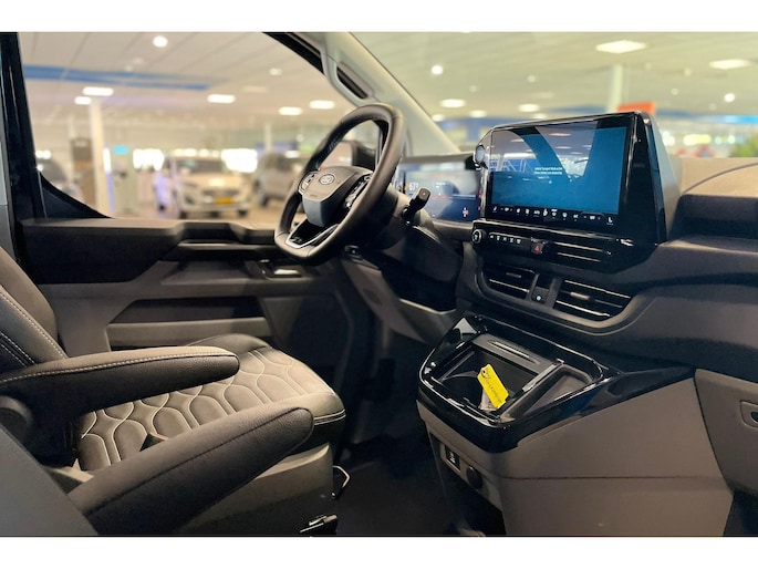 Kies je voor een Ford dan kies je voor een auto met dynamische vormgeving, moderne techniek en een uitstekende wegligging. Het zijn eigenschappen die je allemaal terugziet in deze Transit Custom. Je hoeft niet langer te wachten, deze splinternieuwe auto is nu direct beschikbaar Minder vaak tanken? Dat gaat lukken, dankzij de hybride motor die zowel op brandstof als elektriciteit werkt. Een mooie combi, die merkbaar is in de portemonnee. Deze Ford Transit Custom komt in de luxe uitvoering, inclusief lederen interieur. Deze auto is ook voorzien van stoelverwarming. Stramme vingers krijgen 's winters een VIP-behandeling van het verwarmd stuurwiel. Zelfs bij weinig parkeerruimte krijgen passagiers via de schuifdeur voldoende mogelijkheid om in en uit te stappen. Tot de uitrusting van deze Ford behoren ook 16 inch lichtmetalen velgen, LED koplampen, extra getint glas en verstelbare lendensteunen.