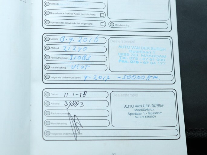 Onderhoudsboekjes: Aanwezig