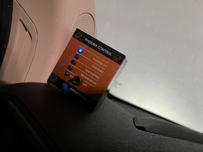 - Stroom op locatie verschillende v230 stopcontacten en 12v aansluitingen doormiddel van een Victron omvormer 12volt voor 230v / 220v extra accu. Deze wordt geladen als de bus rijd.