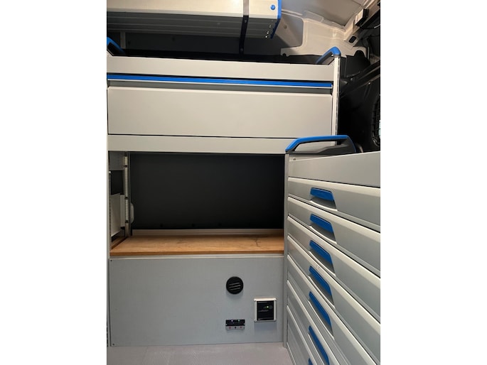 L2H3 Compleet uit bedrijf genomen ingerichte servicewagen. Deze bus is gebruikt om op locatie te werken en van vele gemakken voorzien.
